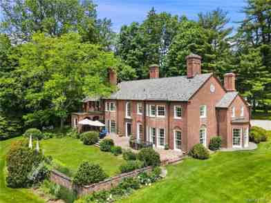 CANTITOE HOUSE - Reminiscent of the great country estates of old England. Long drive through manicured grounds to formal courtyard. Impressive Brick Georgian Manor, circa 1934. Spectacular old-world architecture with rooms of perfect proportion with incredible detailing. Substantial millwork and period moldings, French doors and plaster walls. Finely appointed living space with formal Living and Dining Rooms for entertaining. Richly paneled Library. Chef's Kitchen. Six Bedrooms including private First Floor Guest Suite with Sitting Room. Sparkling Swimming Pool with beautifully renovated Pool/Guest House with Gym. Tennis Court. Over twelve estate acres in the heart of Bedford horse country. A remarkable offering.