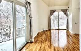 A rare find in the "Duck Island" neighborhood @ the epicenter of Downtown, Tremont & Ohio City. Grove Court Condominiums sets atop a bluff along the Cuyahoga River in downtown Cleveland! It is a one of kind building with unique condos and the best views of Cleveland available located North off the Lorain Carnegie Bridge on a quiet cul-de-sac. This 2-story loft open floor plan condo has many nice features. Amazing views of the Lorain - Carnegie Bridge and the Pairs of statues designed by sculptor Henry Hering and architect Frank Walker (titled the "Guardians of Traffic") and eclectic walking garden. Enjoy two private balconies with sliding doors. Vaulted Ceiling, Loft, Skylight - Bright and Open Atmosphere Walk to the Westside Market (Ohio City), RTA, Tremont, Progressive Field, and Rocket Mortgage Field House. The unit features 2 bedrooms, 2 full bathrooms, and 2 private balconies. The kitchen comes fully equipped with a dishwasher, disposal, refrigerator, range, and microwave. In-suite washer and dryer hookups are available (tenant may use existing units, maintained by the leasee, or bring their own). Residents enjoy a 1 Indoor Garage Parking Space and free outdoor private lot for guests, along with access to community amenities including a party room and beautifully maintained walking garden.