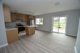 Large newly renovated 1 bedroom suite with patio on main floor (no stairs) in quiet apartment building. Located at 245 Niagara Street Unit 6, St. Catharines. Newly-renovated kitchen with stove, fridge, and island with a dishwasher. Open concept living room. Updated 4-piece bathroom. Lots of closet space. Onsite laundry. One parking spot included. Close to bus stop. Centrally located in downtown area. Close to shopping and amenities.