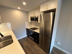 This bright and renovated junior 1-bedroom unit offers approximately 514 square feet of modern living space. This unit is located on the 2nd floor and faces east, providing plenty of natural light. Enjoy relaxing on the private balcony, accessible through sliding patio doors, where a propane gas-fired BBQ is allowed. The kitchen area features high-quality quartz countertops, bespoke built-in storage, a dishwasher, microwave, and lots of space for all your storage needs. The unit also has in-suite laundry and stunning hardwood flooring throughout. Additional building amenities include EV chargers, indoor gated parking available for an additional fee, included bike storage and optional storage lockers (at an extra cost).