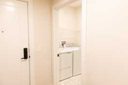 Both bedrooms are well-sized, making the layout ideal for roommates or a home office setup. The primary bedroom includes a walk-in closet with a modular storage system. Two full bathrooms feature modern fixtures and clean, contemporary design.