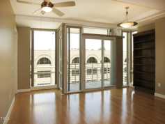 Be a part of East 54, one of Chapel Hill's premier condominium communities. East 54 is an urban village of luxury condos, shops and dining, just minutes from UNC campus and convenient to I40. This fifth floor unit is in a secured building with an elevator. There are hardwood floors in the combined living and dining areas, and the kitchen. There is a ceiling fan and built-in book case in this space. A wall of windows and the balcony provide panoramic views of the shopping plaza below. The kitchen features granite counter tops, ample cabinets, and stainless appliances. The laundry area includes a stacked washer and dryer, shelving and storage space, which could be used as a pantry. The bedroom has carpet, a ceiling fan, a large closet, and direct entry to the bathroom. The bathroom features an oversized shower with tile surround, tile flooring, and a dual sink vanity. There is a second bathroom door from the hall for guests. Amenities include the roof top courtyard and pool and the fitness room. This property includes one parking space in the under building parking lot. A storage cage is located in the storage room in the garage near the parking space. Additional parking is available, but not reserved. Pet considered with fee and prior approval. $15/mo filter fee.