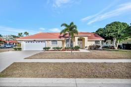 Enjoy outdoor living with a covered lanai for al fresco dining, a large pool with outdoor shower, peekaboo water views, and generous side and backyard space ideal for pets.