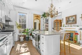 Welcome to 160 MacDonough Street, a classic Brooklyn brownstone that perfectly blends timeless charm with modern comforts. This beautifully maintained upper triplex includes 4 bedrooms and 2.5 bathrooms, making it a truly rare find in the heart of historic Bedford-Stuyvesant. Step inside to discover stunning hardwood floors that flow throughout this elegant home. The expansive living spaces are enhanced by decorative fireplaces, crown moulding and striking chandeliers, creating both warmth and sophistication. The chef s kitchen is the heart of the home, featuring stainless steel appliances including a gas stove, wine cooler, drawer style microwave and dishwasher. With its eat-in design, this kitchen is perfect for meal prep and entertaining alike. Right off the kitchen is a private deck that overlooks a lovely backyard. Upstairs, the serene bedrooms are generously proportioned, offering comfort and privacy. The primary bedroom easily fits a king bed with plenty of closet space and there are 3 more bedrooms, one on the top floor that can easily be a media room and office space or a guest suite. Modern amenities include washer/dryer in-unit, air conditioning, and gas heat, providing year-round comfort and convenience. With its southern & northern exposure, the home is filled with soft, natural light throughout the day. Also, solar panels on the roof help offset your electricity. SMALL DOGS ALLOWED UPON APPROVAL. Set on a picturesque, tree-lined street in one of Brooklyn s most coveted neighborhoods you will enjoy nearby local favorites like Daphne's, Frog Wine Bar, Saraghina, Dolores, Ler Lers Thai, Peaches, Corto & Warude just to name a few. Just 2 blocks to the C train and only 20-30 mins. to JFK & LaGuardia by car. Also, the Brooklyn Prospect International Elementary School is right around the corner (272 Macon St). 160 MacDonough Street is the perfect blend of classic charm and contemporary living. Don t miss your opportunity to make this stunning brownstone triplex your own!