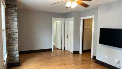 The apartment offers a bright, open layout with hardwood floors and well-maintained shared spaces. Residents have access to a fully equipped kitchen featuring a gas stove, microwave, and dishwasher, along with a shared bathroom and on-site laundry. A shared yard provides additional outdoor space.