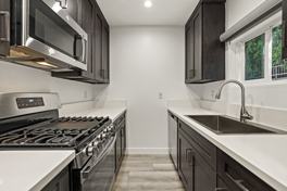 Carefully restored and designed by a renowned LA designer, these late 1950s modern luxury rental homes feature keyless entry door locks to spacious one and two-bedroom floor plans with newly renovated kitchen and bathrooms. The kitchen boasts sparkling white stone quartz countertops with brand new self-closing cabinetry and high-end stainless-steel refrigerators with matching gas cooktop with oven and microwave. iRing doorbells with a smart home video security camera are also included. There’s a community washer and dryer on site. Bathrooms feature porcelain tiled bath tubs and glass shower doors. Each rental home also includes central A/C cooling and heating with recessed lights with luxury style cellular shade window blinds and distressed wood plank floors. | INTERIOR | - Cellular Shade Window Blinds - Spacious Designer Floor Plan - Vinyl Plank Flooring | KITCHEN | - Modern Designer Cabinetry - Quartz Countertops - Stainless-Steel Appliances - Refrigerator - Range w/ Oven - Microwave - Open Kitchen Space Layout | BATH | - Tiled Shower and Bath - Glass Shower Doors - Oversized Vanity Mirror | AMENITIES | - WASHER & DRYER (Community) - Assigned Parking