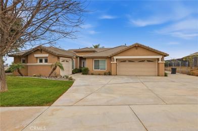This beautifully maintained 4 bedroom, 4 bathroom home offers 2,772 square feet of comfortable living designed for everyday ease and entertaining. Fresh new interior paint throughout and neutral tile flooring create a clean, modern feel throughout. The very open concept layout connects the kitchen, living room, and family room, and a see through fireplace adds warmth that can be enjoyed from both spaces. Large sliding glass doors bring in natural light and showcase mountain and city views. The kitchen features granite countertops, a breakfast bar with seating, and appliances including dishwasher, oven, microwave, stove, and exhaust hood. The spacious primary suite offers a large walk in closet and an en suite bath with oval soaking tub, separate shower, dual vanities, and private toilet area. Additional bedrooms provide flexibility for guests or a home office, and a guest bath includes a shower and tub combination. An individual laundry room offers lot of space, cabinets, and shelving. The backyard is ideal for entertaining with landscaping, a fire pit with a brick seating area, and wrought iron view fencing with block wall privacy. The front yard features grass and mature shade trees, and a decorative wood and glass front door adds great curb appeal. A 2 car attached garage for vehicle space or storage, and an area for a large RV or boat parking. Located in Yucaipa near parks, schools, shopping, dining, and freeway access, this home offers small town charm with everyday convenience. Schedule your private showing today.