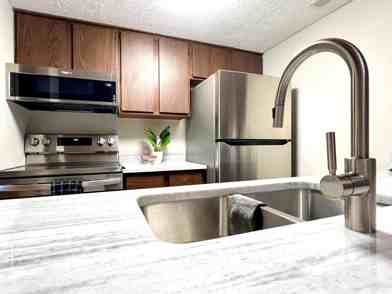 Second floor condo featuring 2 bedrooms and 2 full bathrooms, with a private patio, designated car port parking and small storage unit! This is a quiet complex, with trash, lawn care, appliances and snow removal included . Mid century modern kitchen with new granite counter tops and stainless appliances, air fryer stove and eat-in bar. The primary bedroom has an en-suite bathroom and double closets. The second bedroom is spacious with ample closet space. Close to Taylorsville MetroPark, and walking distances to the Vandalia pool. Conveniently located close to I70-I75 interchange, and countless restaurants and shopping options! Brand new furnace and central air! Available for showings 2/27. 20 minutes from Wright Patterson Air Force Base.