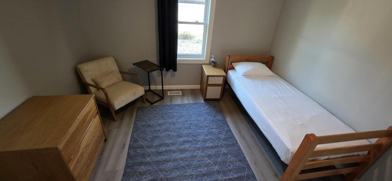 Welcome to your private room in a shared home. Included in your stay: Twin XL bed w/ pillow, sheets, and protectors. Black out curtains, fan, end table, reading chair w/ desk, rug, dresser, and closet.