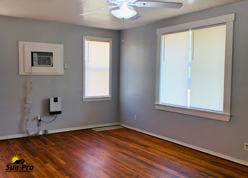 This unit features beautiful hardwood flooring throughout, adding timeless appeal and easy maintenance. The living area is filled with natural light from multiple windows, creating an open and airy feel. A decorative arched entry leads into the kitchen, giving the space architectural charm and separation while maintaining flow.