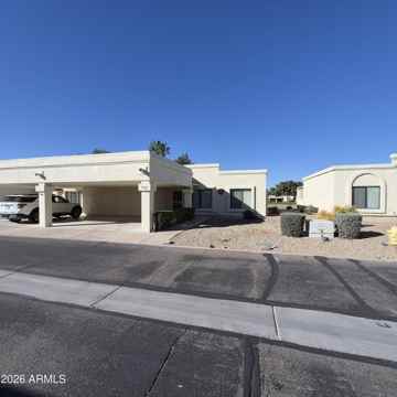 Arpil 2026 available - always check calendar first! Located in 55+ community of Fountain of the Sun - Fully furnished 2 bedroom vacation rental - not available for long term lease - already rented for Dec thru March 2027 ON THE GOLF COURSE-includes utilities, wifi, cable tv. New flat screen in Living area- Kitchen is fantastic-split bedrooms-double carport parking-NO pets NO smoking - No subletting Just bring your suitcase and enjoy sunny AZ- This area has it's own heated pool/spa and with purchase of the amenities pass you can use the community pool-spa and all the other amenities - You pay to play golf. Min 30 day rental, rates vary per month. Max 4 occupants
