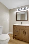 This 2 bedroom, 1.5 bath has undergone a complete, top-to-bottom renovation with thoughtful upgrades throughout. Improvements include brand-new vinyl plank flooring and interior doors, a fully redesigned kitchen with soft-close cabinetry and quartz countertops, and beautifully updated bathrooms featuring new vanities, mirrors, fixtures, and hardware—including a walk-in shower in the primary bath. All electrical and plumbing fixtures have been replaced, and the home is finished with fresh, modern paint, Google Nest thermostats, and a large gas fireplace with a mantel—resulting in a cohesive, move-in-ready residence.