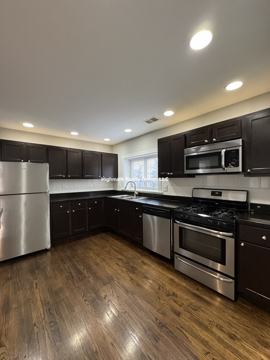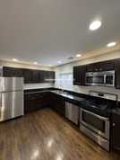 Stainless steel appliances, microwave, gas stove, and dishwasher