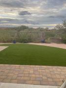 Open Floor Plan with large living room, family and dining rooms, wood floors throughout and 3 large bedrooms with large walk-in closets in all 3 bedrooms. Open kitchen with an island and plenty of cabinets and a pantry. His and her's sinks, marble counter and garden tub in the master bathroom. 2-vehicle garage with additional storage shelving. New artificial turf and patio with pavers, big back porch and a large storage shed. Located in the gated subdivision of Sweetwater Reserve, a family friendly community west of Silverbell Road near downtown, University of Arizona, Pima Community College West Campus and Robbins Elementary School (TUSD.) Great views of the mountains to the north and amazing sunsets with an open view to the natural desert wash. Low maintenance desert vegetation with a new irrigation system. Gated back yard and side yards, small dogs and cats are ok. HOA fees paid by landlord.