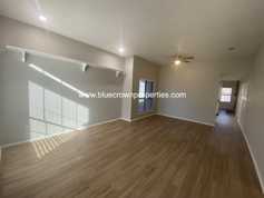CALL OFFICE FOR STATUS** This home is located in Creek Crossing subdivision. 3 bedrooms and 2 living spaces. This spacious home offers a large living room and formal dining rooma and a family room with decoreative fireplace. The spacious kitchen has a lot of counter top space and a eat in breakfast nook area. Nice size bedrooms and bathrooms. Nice size backyard great or entertaining. Utility room with full size connections, two car garage. One or two small pets up to 35 pounds. Lease admin fee $195. Renters insurance of $100,000 is required.