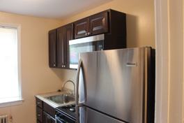 Sunny, spacious one- bedroom apartment on a quiet street with updated kitchen with stainless appliances and hardwood floors.