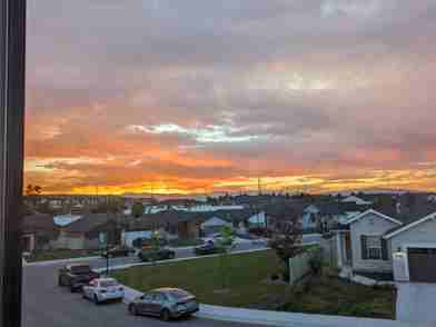 * Backyard fire pit, covered outdoor storage, and strawberry bed
