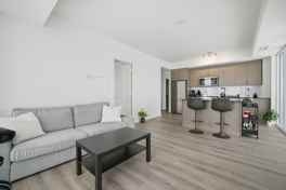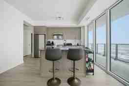 Experience elevated living at Charisma Towers. This fully furnished, beautifully designed corner suite offers 2bedrooms, 3 bathrooms, and 969 sq. ft. of bright, open-concept living space. 9-ft smooth ceilings and floor-to-ceiling windows flood the unit with natural light. The modern kitchen features extended cabinetry, a centre island, Corian countertops, and stainless steel appliances, perfect for everyday living and entertaining. The living area walks out to a spacious balcony with CN Tower views. Both bedrooms include private en-suites, highlighted by a generous glass stand-up shower in the primary suite. An in-suite stacked washer and dryer adds everyday convenience. Fully furnished and move-in ready, this lease includes 1 parking space and 1 locker. Enjoy an impressive selection of luxury amenities, including a fitness centre, outdoor pool, sauna, rooftop terrace, recreation lounge, games room, bocce court, and media room. Ideally located just steps to Vaughan Mills, Canada's Wonderland, Cortellucci Vaughan Hospital, shopping, dining, public transit, and easy access to Hwy 400 & 407.