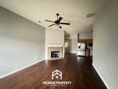Step inside to a bright and inviting living room featuring large windows, high vaulted ceilings, hardwood floors, and a cozy fireplace, creating the perfect space for relaxing or entertaining. The open kitchen layout offers plenty of cabinet storage and prep space, making everyday living both functional and enjoyable.