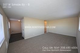 Spacious and Bright 2 Bedroom Upstairs Apartment! This 2 bedroom, 1 bath apartment offers a clean, modern feel with fresh white paint, abundant natural light, and a versatile neutral color palette that complements any décor. The primary bedroom features double closets, giving you plenty of storage space and everyday convenience. The kitchen is both stylish and functional, with beautifully painted cabinets and all the essential appliances—including a dishwasher to make cleanup a breeze. Off-street parking is included, adding to the ease of daily living. Enjoy worry-free landscaping and a prime location near Bicentennial Park, with quick access to major roads that connect you seamlessly to anywhere in the Pocatello/Chubbuck area. Don’t miss your chance to live in this well-located and comfortable apartment!