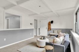 - Living Room is spacious with new carpet and fresh paint, where a large picture window floods the room with natural light.