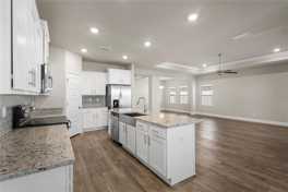 This beautiful 4-bedroom, 3.5-bath home offers an open and inviting layout with a private mother-in-law suite, perfect for hosting guests or accommodating extended family. The gourmet kitchen features bright white cabinetry, granite countertops, stainless steel appliances, and a large center island ideal for cooking and gathering. Luxury vinyl plank flooring enhances the main living areas, while soft carpeting adds comfort to the bedrooms. Enjoy outdoor living on the covered porch and the convenience of a spacious three-car garage.
