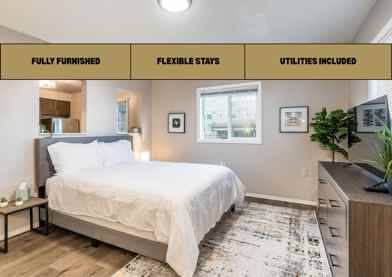 Enjoy all the comforts of home when you stay at this fully furnished unit. Arrive to your Suite and we’ll provide the rest:- Seamless self check-in- Fast Wi-Fi and work desk- Fully equipped kitchen with stove/oven, microwave & dishwasher- chef it up at home!- Smart TV- Luxury Vinyl Floors- Queen size bed with mattress protector, sheets, duvet & pillows for sweet dreams- Towels, soap, shampoo, conditioner, hairdryer*Please note: This space does not contain air conditioning - fans will be provided. Satisfaction Guaranteed:- Professionally cleaned, expertly furnished, and guaranteed best value- We've been serving traveling nurses, military travelers, business travel, families, and those simply seeking a relaxing stay since 2017- 24/7 around the clock customer service and support