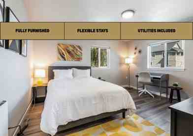 Perfect place for any traveler. Experience a fully-furnished, private 1BR 1BA apartment located in downtown Tacoma. Exploring will be painless with this unit’s location in central downtown. You'll enjoy easy access to major highways, UW-Tacoma, the Convention Center, Tacoma Dome, Museum of Glass and more. The SpaceWhat to Expect: Enjoy all the comforts of home when you stay at this fully furnished unit. Arrive to your Suite and we’ll provide the rest:- Seamless self check-in- Fast Wi-Fi and work desk- Fully equipped kitchen - chef it up at home!- Smart TV- Luxury Vinyl Floors- Queen size bed with mattress protector, sheets, duvet & pillows for sweet dreams- Towels, soap, shampoo, conditioner, hairdryer*Please note: This space does not contain air conditioning - fans will be provided. Satisfaction Guaranteed:- Professionally cleaned, expertly furnished, and guaranteed best value- We've been serving traveling nurses, military travelers, business travel, families, and those simply seeking a relaxing stay since 2017- 24/7 around the clock customer service and supportDisclaimer: Please be advised that we reserve the right to cancel reservations if the required booking forms are not completed within 48 hours for standard bookings or within one hour for same-day reservations.