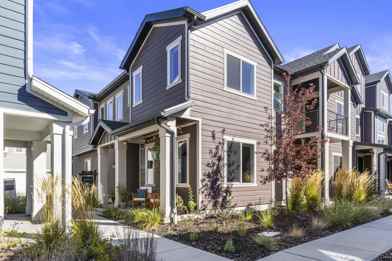 Better than NEW, this chic and sleek 2023 END Row townhome is energy star rated. The open concept floorplan and nine foot ceilings flood the home with an abundance of natural light. Clean and modern lines, quartz countertops, two tone maple soft-close cabinets, and stainless steel appliances are just a handful of many amenities. Retreat upstairs to the generously oversized bedrooms with private en-suites separated by the laundry room. Both bedrooms include walk-in closets spacious enough to be furnished as a loft or multipurpose room. An attached two-car garage provides secure parking and has been outfitted with MyQ for enhanced convenience. This home is less than five minutes from the Roy Frontrunner station, making a date night to downtown SLC or an airport commute seamless. The Denver Rio Grande Western Rail Trail, which runs over 23 miles along the West Corridor is also steps away, in addition to countless parks.