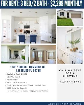 BRAND NEW 3 Bed 2 Bath House in Leesburg🏠 Available for March 15th! DETAILS ✔ - Pet Friendly 🐶 - 3 Bed / 2 Bath, 1800 sq ft with 2 Car Garage - Everything Brand New! - $2300 / Month Requirements 💰 - $500 Security Deposit - Background and Credit Check Give us a call to discuss getting you into your next place! Amenities included: wheelchair accessible, central air, central heat, dishwasher, hardwood floors, stainless steel appliance, updated kitchen, updated bathroom, storage, and washer dryer.
