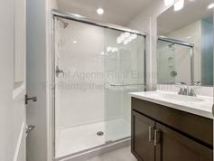 - Brand-new bathroom with spacious walk-in shower with sliding glass doors
