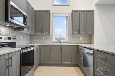 - Whirlpool appliances, including a dishwasher, microwave, fridge, and stove
