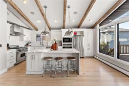 Designed with spacious, open living areas and timeless character, the home features two masonry fireplaces, extensive custom built-ins, and generous gathering spaces filled with natural light. Walls of windows capture breathtaking water views from multiple vantage points, seamlessly connecting indoor and outdoor living.