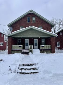 Updated Two Bedroom TwinPlex in Kenmore. This updated apartment features a nice front porch. The porch leads to a large living room with Fo fireplace and the adjacent dining room leads to the second floor and back kitchen. The kitchen has new LVP and comes supplied with range and refrigerator and a back door to the covered car port.. The second floor hallway features built-in cabinets and two bedrooms separated by full bathroom. There is a private basement with working shower stall and washer and dryer hook ups. Tenant pays all utilities, gas, electric and water. No Smoking. No Pets. Renters insurance required.