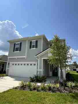 Welcome to Trailmark! This beautiful four-bedroom, three-bathroom Dream Finder's home is located in the Trailmark community of St. Johns County. This open and spacious residence features a gourmet kitchen equipped with a large island, Carrera Morro quartz countertops, stone gray cabinetry, and a corner pantry. The main level includes laminate flooring throughout the living areas and a guest bedroom with an adjacent full bath. The second floor offers a versatile loft, a laundry room, and two additional bedrooms. The owner's suite is well-appointed with an oversized shower, his and hers sinks, and a large closet. Additional highlights include nine-foot ceilings on both levels, a covered lanai, a gas cooktop, and a gas tankless water heater.
