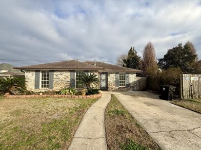 Spacious 3 bedroom, 2 bath single-family home located in the heart of Chalmette. This residence features a blend of durable tile and unique stained concrete flooring, an open-concept living area with vaulted ceilings, and a cozy fireplace. The kitchen comes equipped with white cabinetry, granite-style countertops, and stainless steel appliances. Step outside to your private backyard oasis, featuring an expansive covered patio and a large in-ground pool—perfect for entertaining or relaxing in the Louisiana sun.