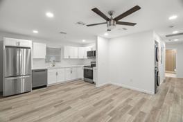 Beautifully rebuilt 2 bed / 1 bath apartment in a brand-new boutique quadplex. This upstairs residence combines modern design with worry-free living—everything is 100% new, from the electric and plumbing to the HVAC, impact windows, insulation, and high-end finishes. The kitchen features sleek cabinetry, quartz countertops, and stainless appliances, while the bathroom feels spa-inspired with upscale tilework, gold fixtures, and a spacious walk-in shower. Bright natural light, in unit laundry, a deck to relax outside, and an efficient layout complement the building's commercial-grade construction. Located close to Downtown St. Pete and steps from Crescent Lake Park, it's ideal for those who enjoy an active lifestyle, with secure on-site bike parking making daily rides safe and convenient.