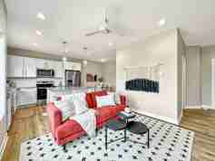- Open plan features large windows allowing the sunshine to stream in and showcase the white cabinetry, quartz countertops, stainless steel appliance package including fridge & stunning lvp that runs throughout the main level