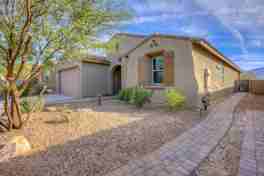 Energy Efficient Smart Home...and truly has it ALL and backs up to common area! Open the front door to an expansive wide entryway leading to your 3 bedroom split floor plan with den. Spacious open Great Room, Chef's Kitchen with stainless appliances, gas cook top and oven, Huge granite Island and walk-in pantry, Relax in your peaceful primary bedroom en-suite, enjoying the spa like bathroom, dual sink vanity with granite counters, large glass shower with custom tile and large walk-in closet. Oversized laundry room with washer and dryer. Wood Plank Tile Flooring throughout, and Carpet in Bedrooms. Water softener and RO system included. Enjoy and entertain with the pool and waterfall feature surrounded with travertine stone patios, faux grass and built-in BBQ. Private and Beautiful Mountain Views!