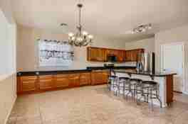 Beautiful home in the heart of Maricopa. Great open floor plan with black granite counters, stainless steel appliances, kitchen island, large living area, vaulted ceilings, walk in pantry! 2 bedrooms, full bath & open office/den downstairs. The dining area has a b/i buffet - great counter space & storage. Fresh new paint throughout. New carpet, new stove, and 2 new AC units. Backyard boasts a heated play pool & spacious covered patio for hours of outdoor entertainment. Owner's suite has a huge w/i closet with a separate shower & soaking tub. 2 more beds & bath upstairs. Great community with parks and wide open spaces to enjoy the outdoors. Shopping/dining nearby. Close proximity to highway too! Rent includes pool service & Resident Benefit Package. No smoking. No pets