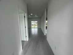 Introducing a brand new construction in the desirable SW Lehigh Acres location! This 4-bedroom, 2-bathroom home is a perfect blend of modern design and comfort. The master en suite features a large tiled shower, his and hers closets, and a luxurious wall tile in the shower and tub. The kitchen is a chef's dream with granite counters, plenty of cabinets, a pantry, and a large peninsula island. It also comes with a full kitchen appliance package, including stainless steel appliances. The large great room opens up to a spacious backyard through a sliding glass door, perfect for indoor-outdoor living. The home also boasts a large laundry room with washer and dryer hook up, high and coffered ceilings, and modern lighting and fixtures. The guest bedrooms are of a nice size and there's a large den that could be used as a 4th bedroom. The guest bathroom comes with a tiled shower/tub combo. The home sits on a large quarter acre lot and has a large rear lanai with a sliding door. The large windows allow for plenty of natural light to fill the home. This home is conveniently located close to all amenities in Lehigh Acres. Don't miss out on this brand new home in a great location! Photos may not be of actual model- for marketing purposes only.