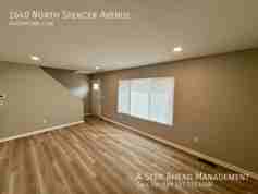 This two story home features a bright and open interior between the living, dining, and kitchen areas. The main living space offers wood-look flooring throughout, recessed lighting, and large windows that allow natural light to fill the room. The kitchen is designed with white shaker-style cabinets, sleek countertops, stainless steel appliances, a built-in microwave, dishwasher, refrigerator, stove and a deep stainless steel sink with a modern faucet. There is ample cabinet and counter space, making it functional for both everyday cooking and entertaining. The open layout allows clear sightlines from the kitchen into the main living area. There are two bedroom downstairs with a full bath and 2 bedrooms upstairs with a full bath. The bathrooms showcases a clean, contemporary design with a walk-in shower enclosed in glass, tiled shower walls, updated fixtures, and a modern vanity with storage underneath. The finishes throughout the home are cohesive, with neutral tones that make the space feel fresh and inviting. The bedrooms offer good natural light and continued flooring for a consistent look throughout the home. Ready for you to move in!
