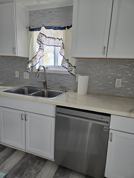 The modern kitchen includes upgraded appliances and a custom countertop, Tiled backsplash , laminate floors combining style and efficiency. The fully remodeled bathroom showcases floor-to-ceiling tile, creating a sleek, contemporary look.