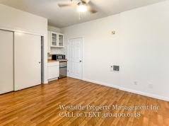 Income Restricted - must earn no more than $63,600 annually and complete city required paperwork. Perfect location, only a few hundred feet away from Third Street Promenade, shops, restaurants, movie theaters, and the beach. No kitchen- small refrigerator and microwave. Separate bathroom with bathtub/shower. Laminate flooring, large closet, double pane window. Charming, quaint, gated 17-unit building, intercom access. No parking, street parking permit available from the city. No pets, no smoking, sorry.