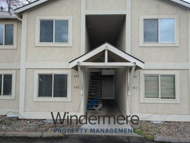 Second floor unit built in 1972 and located in the Vineyards Condominiums, this two bedroom/one bath unit features carpet throughout the bedrooms and living room, kitchen with stainless steel appliances to include fridge, stove and dishwasher, central A/C, access to coin-op laundry facility and seasonal access to swimming pool. Tenant responsible for power and gas. Water, sewer, garbage, and yard care are included with rent. No students. One small dog under 30 lbs negotiable, subject to pet deposit and monthly pet fee.