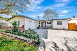 This charming single-story home blends mid-century character with modern updates, featuring an inviting front porch and a meticulously landscaped exterior that provides immediate curb appeal. Inside, the spacious open-concept living area is defined by soaring vaulted ceilings with exposed wood beams and large windows that fill the space with natural light. A stunning stone fireplace serves as a central focal point, while elegant wood-look flooring flows seamlessly throughout the main living spaces. The gourmet kitchen is a chef's dream, complete with sleek countertops, high-end stainless steel appliances, and modern cabinetry designed for both style and functionality. Outside, the private backyard retreat offers a low-maintenance patio area perfect for entertaining and dining. This exceptional property, which includes a convenient two-car garage, represents a rare opportunity to experience a residence that perfectly balances timeless design with contemporary comfort.