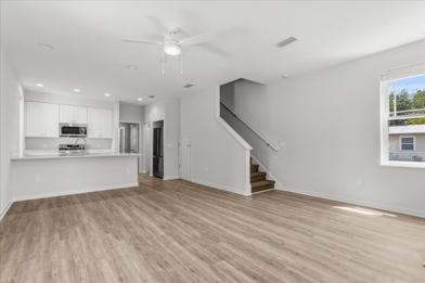 - Large and open living/dining room/kitchen