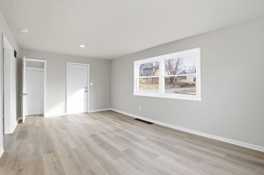 This updated 2-bedroom, 1-bath home features fresh paint and new flooring throughout, creating a clean and modern feel. The fully renovated kitchen offers stainless steel appliances, quartz countertops, a subway tile backsplash, and white shaker cabinets for a bright, contemporary look. Additional highlights include convenient main-floor laundry and an off-street parking pad.