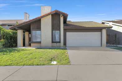 This home offers 4 bedrooms and 2 bathrooms, with high ceilings in the living and dining areas, sliding doors to the backyard, and laminate and tile flooring throughout.
