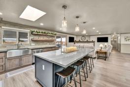 A massive island anchors the chef's kitchen, complete with premium appliances and upscale details at every turn. Dual TVs in the great room let you watch two games at once, and the gas fireplace adds the perfect cozy touch. The former greenhouse atrium now serves as a stunning office filled with natural light, creating a work-from-home space that truly feels like an oasis—with its own TV to keep you connected.